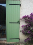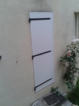 VOLET GAMME ECO : Les accessoires sont soit coloris noir soit coloris blanc : rivets - Dardennes et visseries sont de coloris : noir ou blanc, les arrêts marseillais composite sont en coloris noir ou blanc. Les nœuds et pentures : noirs - Espagnolette noire - Lacets noirs. Les volets sont munis d'une petite espagnolette.